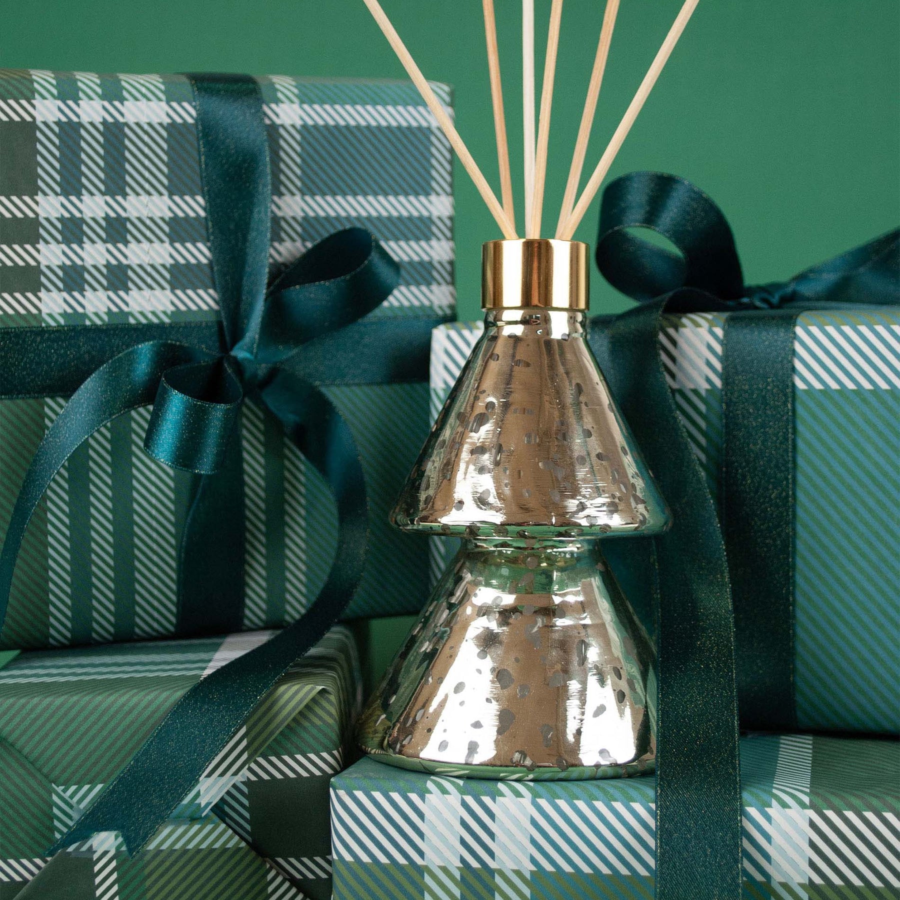 Encased in a festive, tree-shaped mercury glass vessel, this reed diffuser doubles as a decorative accent that sparkles beautifully in any room. It’s the perfect addition to holiday décor or a thoughtful gift for those who cherish cozy, seasonal scents. The natural reeds release a continuous fragrance, keeping your home fresh, bright, and full of cheer all season long.