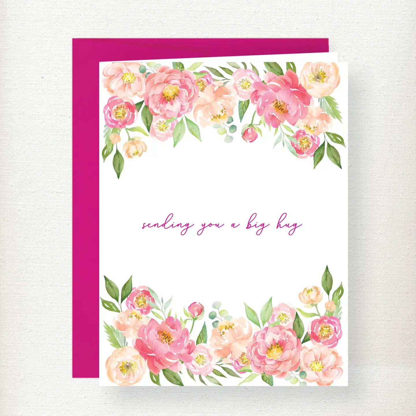 Send warmth, comfort, and compassion with the Kramer Drive Big Hug Greeting Card. Featuring delicate watercolor florals in shades of blush, pink, and peach, this heartfelt design is paired with the simple yet meaningful message “sending you a big hug.” It’s the perfect sympathy card to show love and support during difficult times.